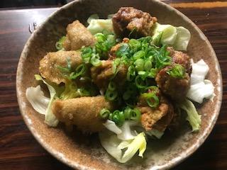 「若鶏の唐揚げと揚げ餃子の油淋ソースがけ」